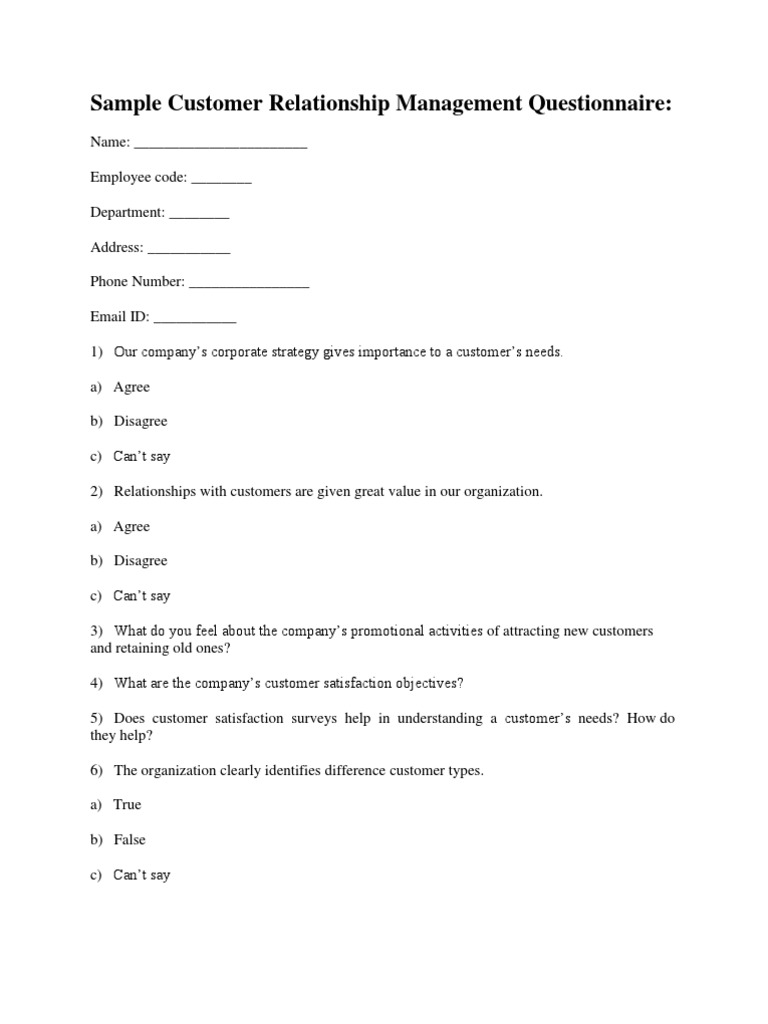 Beautiful Employee Relations Questionnaire
