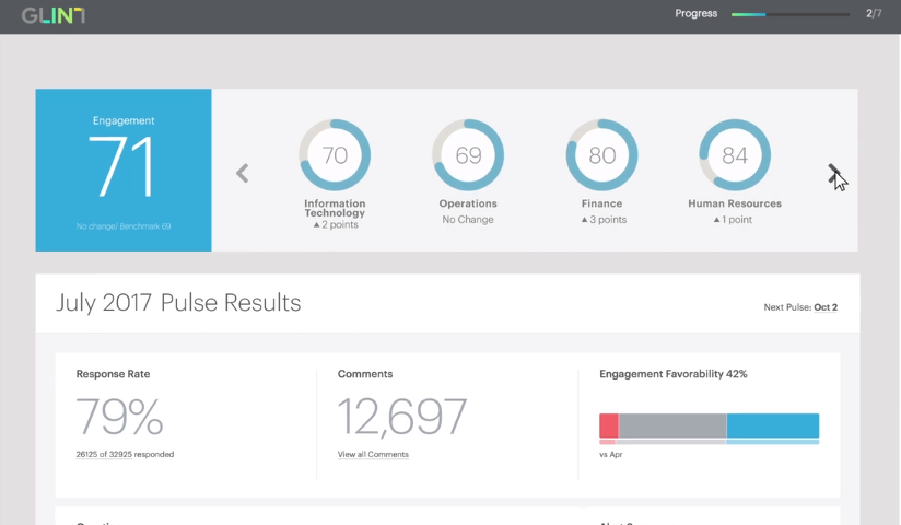 Leading organizations measure and improve employee engagement with Glint. Glint is an integrated SaaS that comprises four core solutions for helping business organizations gauge and enhance working environment performance. Youll see in this report that more than 65 of senior leaders surveyed think performance management is viewed as a check the box activity at their organization.